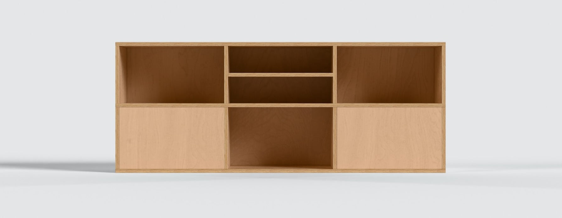 Use our 3D configurator to design storage that fits your space. We'll confirm specs and build it in birch plywood.